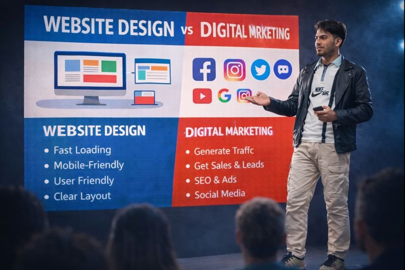 This article explains Website Design vs Digital Marketing in 10 detailed points, helping you clearly understand their roles, differences, and how they work together.